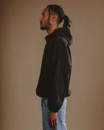 Hoodie in printed sweatshirt fabric with a soft brushed inside .cotton hood with a warpower front, dropped shoulders and a kangaroo pocket. Long sleeves and ribbing at the cuffs and hem.
